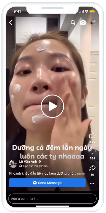 Cả 2 chiến dịch đều sử dụng quảng cáo bộ sưu tập và quảng cáo video. Họ phân phối quảng cáo này cho đối tượng rộng là phụ nữ ở Việt Nam trong độ tuổi 28-50, quan tâm đến việc làm đẹp, mỹ phẩm và chăm sóc da. Quảng cáo cũng được phân phối cho đối tượng tương tự gồm những người đã dùng Messenger trong 90 ngày qua. Đội ngũ này còn nhắm mục tiêu lại cho quảng cáo bằng đối tượng là cùng nhóm nhân khẩu học đã xem quảng cáo video của Lê Vân Anh lâu hơn 10 giây.