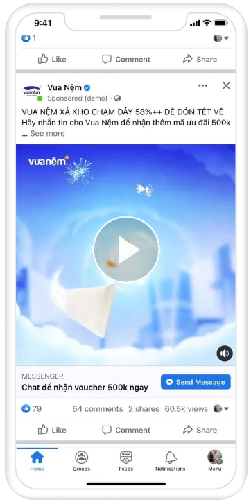 Nội dung chiến dịch của Vua Nệm là giới thiệu các sản phẩm với văn bản động và phần thuyết minh để khuyến khích người xem quy đổi mã giảm giá. Khi mọi người click vào những quảng cáo này, trải nghiệm Messenger tự động sẽ mở ra và mọi người sẽ được hỏi liệu họ có muốn nhận giảm giá hay không. Những người chọn “Có” sẽ tự động nhận được mã giảm giá trong cuộc trò chuyện trên Messenger.